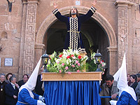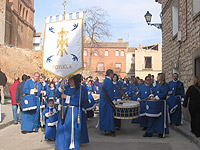 Según fuentes bien informadas el próximo año, tras la incorporación de la Cofradía de Moyuela a la organización, podría celebrarse el XVI Encuentro de la Amistad en Moyuela, lo que supondría verdaderamente la mayoría de edad en estos acontecimientos. • Rompida de la hora El sábado día 19 de marzo, víspera del Domingo de Ramos, se llevó a cabo la tradicional concentración y rompida. Este año, en Almonacid de la Cuba a las 23.50 h. Participaron en la rompida las Cofradías de Azuara, Belchite, Lécera, Letux, Mediana, Moyuela y Muniesa. El acto duró hasta altas horas de la madrugada. • Semana Santa El desarrollo de la Semana Santa 2005 volvió a responder a las expectativas generadas por el programa de actos y que tuvieron como novedad el segundo paso móvil, así como la incorporación de una imagen del Cristo Crucificado que se encontraba en San Clemente y que tras la oportuna limpieza y la restauración salió en procesión el Viernes Santo causando admiración e incluso lágrimas entre los asistentes. El recorrido por las calles y ermitas, junto al sonido de cornetas, bombos, timbales y tambores y el silencio rasgado por las jotas llenas de sentimiento, supuso nuevamente celebrar la Semana Santa con devoción, generando una gran asistencia de moyuelinos, amigos e incluso personas de pueblos limítrofes. Parece que la Semana Santa toma fuerza y pasa a ser fiesta de interés local. Programa Semana Santa:
