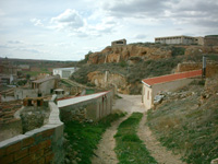 antiguas bodegas y corrales (la mayoría en ruinas) entre los